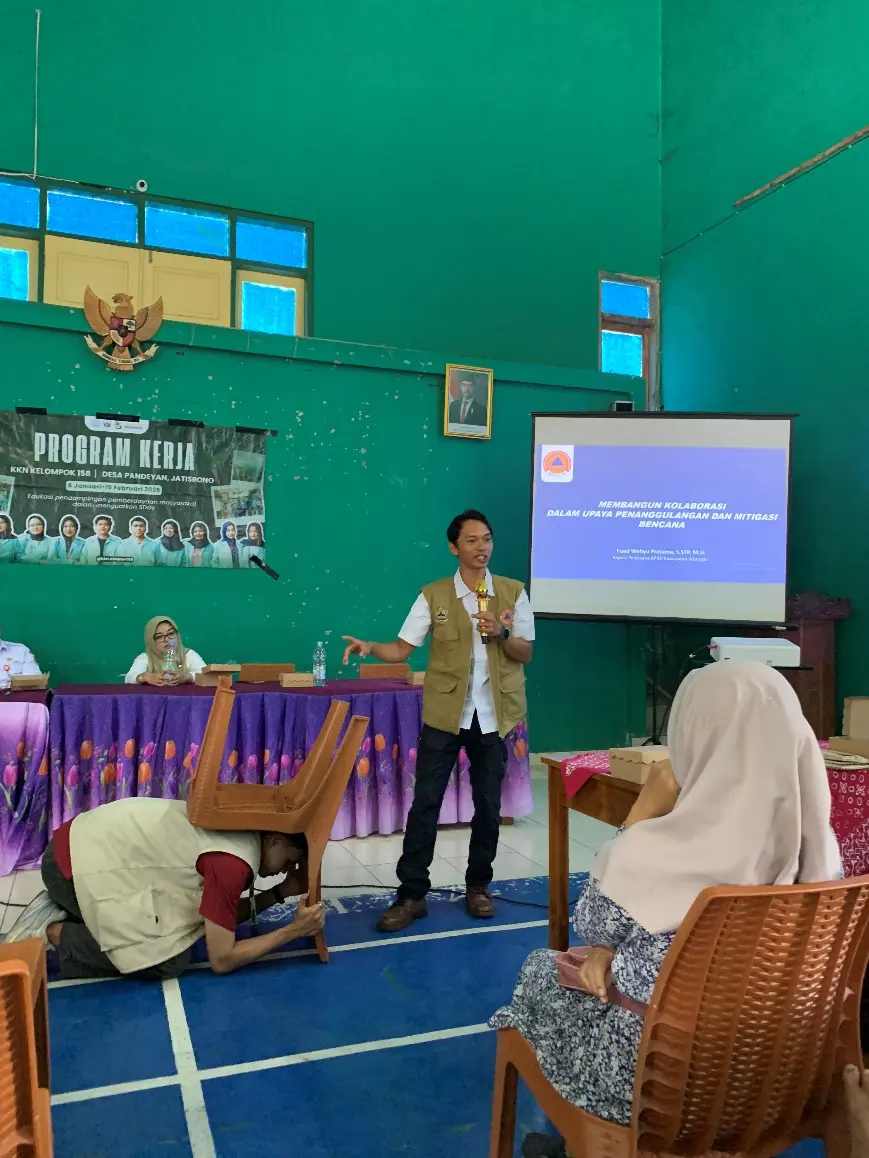 Kegiatan ini dilaksanakan sebagai bentuk pengabdian kepada masyarakat sekaligus respons terhadap kondisi geografis Desa Pandeyan yang memiliki potensi risiko bencana, seperti banjir dan tanah longsor saat intensitas hujan meningkat. Melalui sosialisasi ini, mahasiswa KKN berupaya membangun pemahaman masyarakat mengenai langkah-langkah mitigasi, pencegahan, serta penanganan awal ketika terjadi bencana.