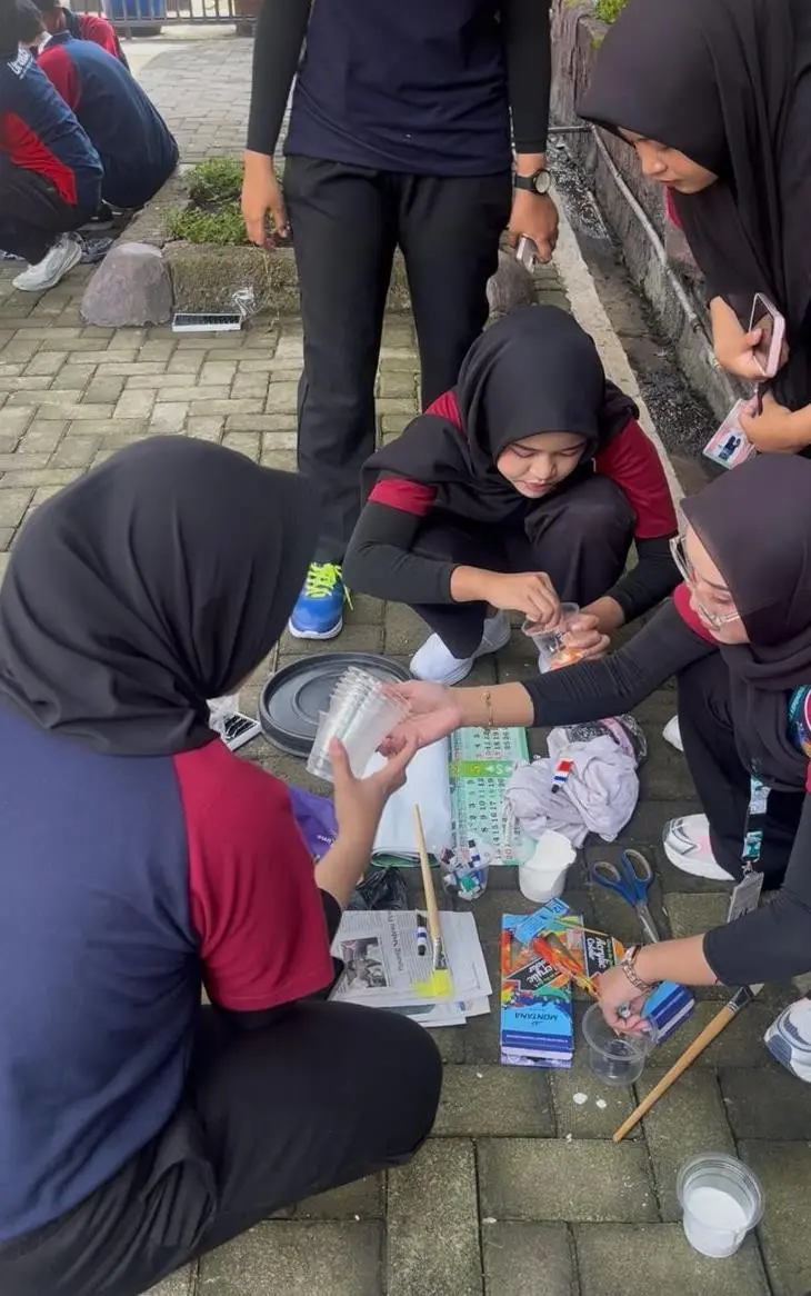 Sebagai bentuk penguatan materi, siswa juga mengikuti kegiatan kreatif melukis tong sampah sesuai dengan jenisnya. Kegiatan ini tidak hanya melatih kreativitas, tetapi juga menanamkan kesadaran dan tanggung jawab siswa dalam menjaga kebersihan lingkungan. Melalui kegiatan ini, diharapkan siswa dapat menjadi agen perubahan kecil yang berperan aktif dalam upaya pencegahan banjir sejak dini.