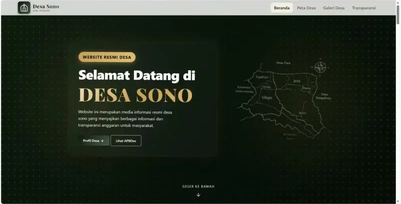 Melalui kolaborasi dengan Pemerintah Desa Sono, website desa dirancang sebagai pusat informasi resmi yang memuat profil desa, struktur pemerintahan, peta lokasi, galeri kegiatan masyarakat, hingga akses dokumen transparansi seperti APBDes dan Peraturan Desa (PerDes). Kehadiran fitur transparansi ini diharapkan dapat memudahkan masyarakat dalam memperoleh informasi publik secara terbuka, sekaligus meningkatkan kepercayaan masyarakat terhadap pengelolaan pemerintahan desa.