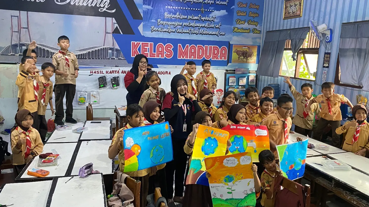 “Kemarin kami membuat poster hemat energi dan belajar untuk selalu mematikan listrik jika tidak digunakan. Pembelajarannya sangat menyenangkan,” kata Dila.