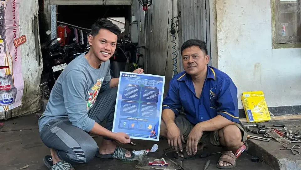 Tidak berhenti di situ, Firja juga mensosialisasikan K3 pengelasan secara luas kepada warga dan tim KKN untuk mencegah risiko di proyek infrastruktur serupa. Ia menjelaskan prosedur standar, peralatan keselamatan, dan pencegahan bahaya secara sederhana, lengkap dengan materi pendukung yang dibagikan.