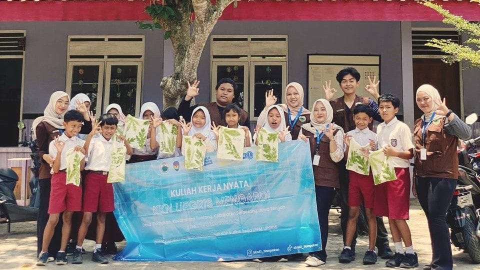 Tlompakan, 23 September 2025 — MahasiswaKuliah Kerja Nyata (KKN) Tematik Universitas Persatuan Guru Republik Indonesia Semarang (UPGRIS) Kelompok 41 mengadakan kegiatan kreatif bersama anak-anak SDN Tlompakan 03 dengan membuat totebag kanvas bermotif alami menggunakan teknik ecoprint.