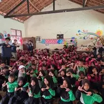 Dalam kegiatan tersebut, mahasiswa dari berbagai jurusan menyelenggarakan rangkaian sosialisasi bertema “Penguatan Koperasi Sekolah melalui Inovasi Lingkungan dan Budaya Kerja Berkelanjutan.”