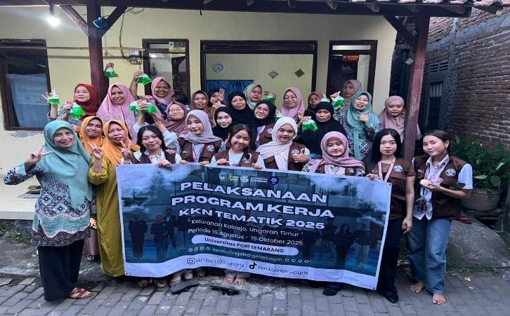 JATENGKU.COM, KAB. SEMARANG — Mahasiswa Universitas PGRI Semarang yang tergabung dalam program Kuliah Kerja Nyata Tematik (KKN-T) Kelompok 08 melakukan pelatihan membuat sabun cuci piring di Kelurahan Kalirejo, Kecamatan Ungaran Timur, Kabupaten Semarang pada Minggu (28/9/2025). Kegiatan ini bertujuan untuk memberikan edukasi mengenai pembuatan sabun cuci piring yang hemat, higienis, dan ramah lingkungan.