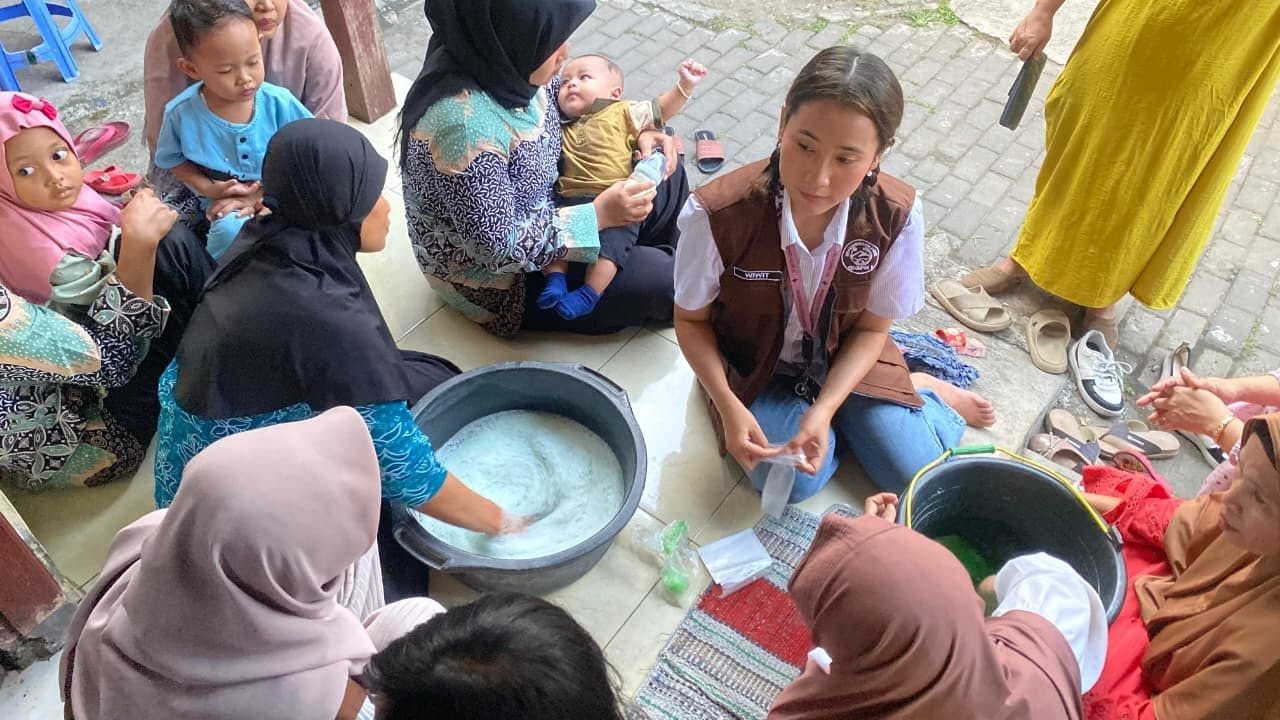 Kegiatan pelatihan pembuatan sabun cuci piring ini mendapat sambutan positif dari warga setempat. Ibu-ibu PKK tampak antusias mengikuti proses pembuatannya, bahkan beberapa di antaranya ikut mencoba membuat sabun sendiri dengan bimbingan mahasiswa. Ibu Yayah selaku ketua PKK RT 04 RW 02 mengaku senang dengan kegiatan ini karena memberikan ilmu baru yang sangat bermanfaat. “Selama ini kami beli sabun jadi di toko, tapi sekarang jadi tahu cara membuatnya sendiri. Selain lebih hemat, sabun ini juga aman digunakan dan bisa dijual untuk menambah penghasilan,” ungkapnya.