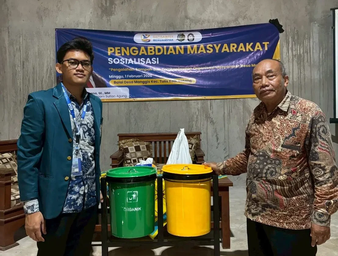 JATENGKU.COM, Batang — Mahasiswa Kuliah Kerja Nyata (KKN) Universitas Diponegoro melaksanakan kegiatan pembuatan keranjang sampah organik dan anorganik di Desa Manggis, Kecamatan Tulis, Kabupaten Batang, pada Minggu, 1 Februari 2026. Kegiatan ini merupakan bagian dari program kerja mahasiswa KKN dalam mendukung pengelolaan sampah dan kebersihan lingkungan desa.