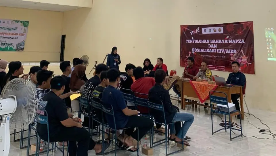 JATENGKU.COM, Ungaran Timur – Mahasiswa Kuliah Kerja Nyata (KKN) yang bertugas di Kelurahan Sidomulyo mengadakan kegiatan penyuluhan kesehatan bertema “Bahaya NAPZA dan Sosialisasi HIV/AIDS” pada Sabtu (13/09/2025). Acara yang berlangsung di balai kelurahan ini dihadiri puluhan remaja hingga perwakilan perangkat kelurahan.