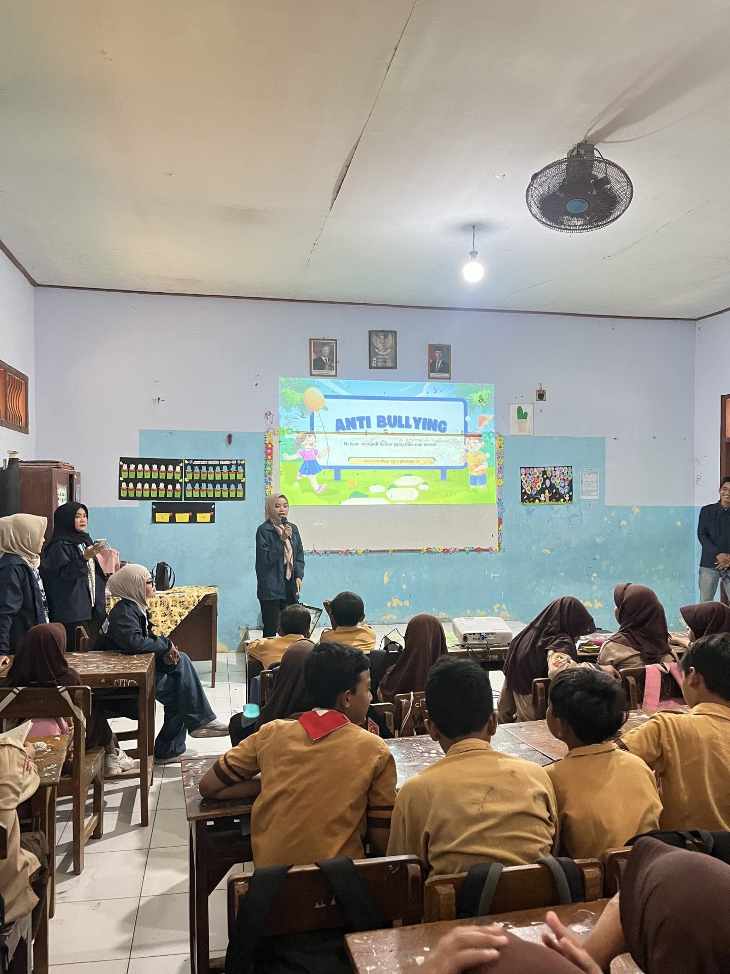 Cara jalannya program ini cukup menarik. Program ini cuma melibatkan siswa kelas 4 SDN Brumbung. Pertama, mahasiswa ajak siswa diskusi tentang empati dan saling menghormati. Kedua, dikasih materi soal strategi cegah, kayak lapor ke guru atau bantu teman yang dibully. Ketiga, mahasiswa ajak siswa bernyanyi lagu anti bullying yang catchy dan mudah diinget, biar pesan anti bullying lebih menyenangkan dan melekat di hati anak-anak. Keempat, ada permainan peran di mana siswa main jadi korban atau pelaku bullying, biar pesan anti bullying mudah diinget.