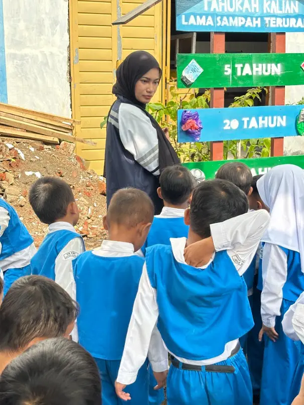 Plang edukasi dirancang dengan visual yang cerah serta bahasa yang mudah dipahami. Informasi yang disajikan berisi jenis-jenis sampah beserta waktu penguraiannya di alam, mulai dari sampah yang terurai dalam hitungan tahun hingga ratusan tahun. Melalui media ini, siswa diperkenalkan pada dampak jangka panjang sampah terhadap lingkungan dengan cara yang ringan namun bermakna.