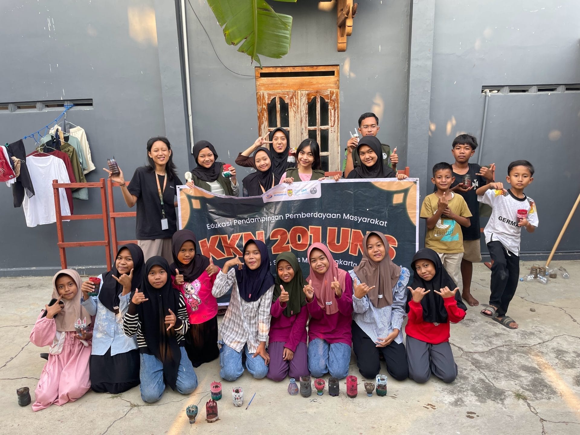 JATENGKU.COM, SUKOHARJO — MahasiswaUniversitas Sebelas Maret (UNS) yang hadir tergabung Kuliah Kerja Nyata (KKN) Universitas Sebelas Maret (UNS) Reguler kelompok 201 dalam kurun Periode Juli-Agustus 2025 dapat menginisiasi adanya program pembuatan botol bekas jadi pot melalui cat akrilik di Desa Tambakboyo Kelurahan sukoharjo, Kecamatan Tawangsari.