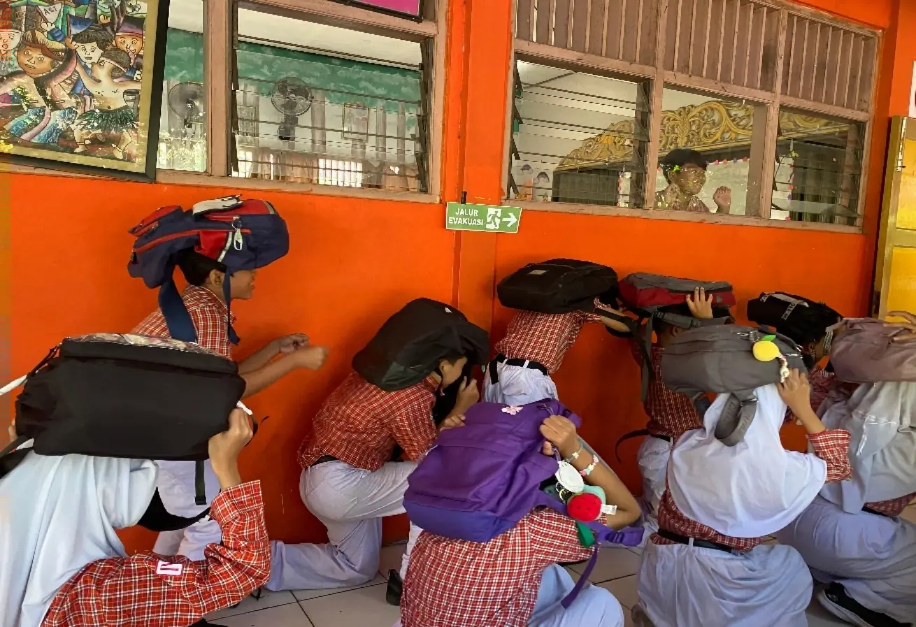 “Anak-anak tidak hanya mendengar, tetapi juga melakukan langsung. Ini sangat membantu mereka memahami apa yang harus dilakukan saat terjadi gempa bumi,” ungkap salah satu guru.